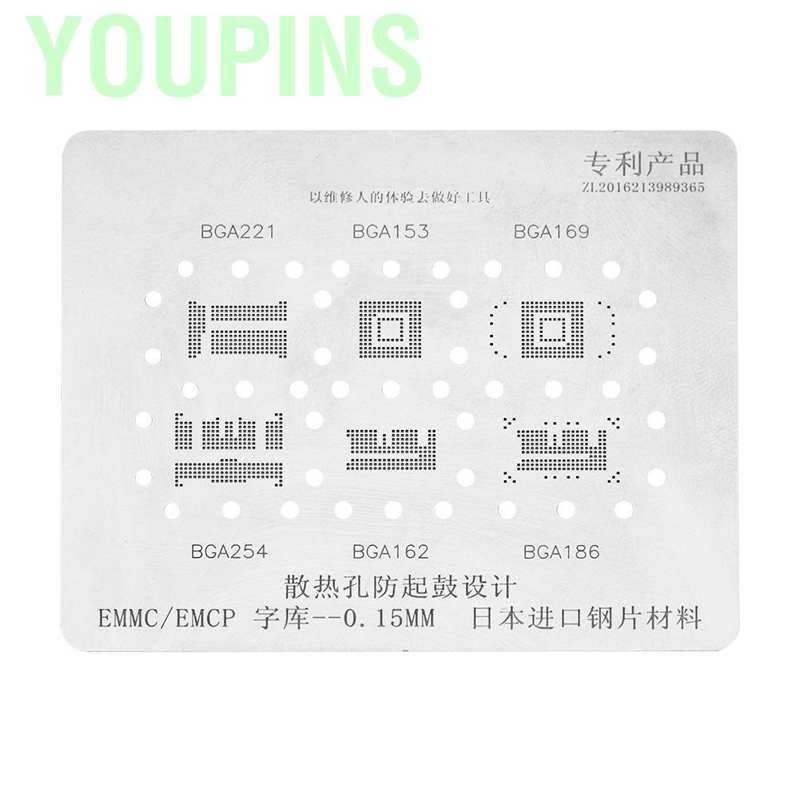 Youpins 6 In 1 Bga Reballing Stencil Bga153 Bga162 Bga169 Bga186 Bga221 Bga254 Emcp Emmc Shopee Malaysia